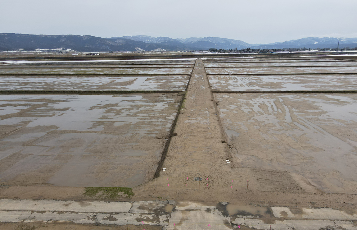 ほ場整備工事です。農家の方たちにとって、利用価値のあるほ場(田んぼ)を造成することが出来ました。