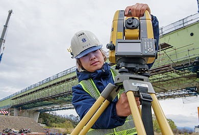 今は橋の床版工事をしています。現場では、測量及び出来形管理や現場管理能力の向上に力を入れています。難しい部分として各作業の先をイメージすることができないと段取りが遅れてしまうこと。自動追尾型TSを使った測量は、予めパソコンで座標を組んでおくとその場で距離を出せ、一人でも作業ができて効率的です。土木事業は、将来的に地図に残る仕事なのでやりがいがあります。入社してから、日本海沿岸東北自動車道など皆さんが使う道路を造る仕事に携われたことは印象深かったです。