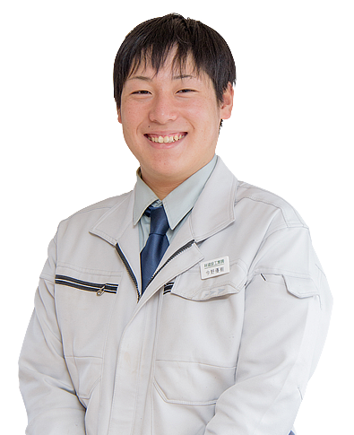 高校の環境技術科で土木を学び、道路や橋の構造に興味が湧きました。先生に地元の建設業の話を聞くと、その中でも林建設工業は道路工事や港湾工事で高い評価を受けていると聞いたのがきっかけで会社を選びました。入社した当時は、道具の名前を覚えることに一番苦労しました。先輩に「ネコ取ってきて」と言われて、「猫?!」と戸惑いましたが、手押し車のことでした(笑)。書類作成など初めてのことばかりで最初は不安でしたが、先輩方はお手本を見せながらアドバイスしてくださったので解決できました。