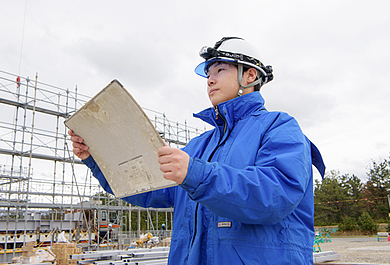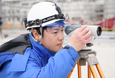 会社のことは、学校で求人票を見て興味を持ち、パンフレットやホームページを自分で調べました。先生からも、地元で歴史がある良い会社だと薦めていただき、同じ高校の先輩も多かったので参考になりました。会社の皆さんは人当たりがよく、わからないことも気軽に聞くことができます。自分は建築部に所属しているので、何もないところから建造物ができていく過程や、現場で考えながら測量などの仕事をするのは面白いです。