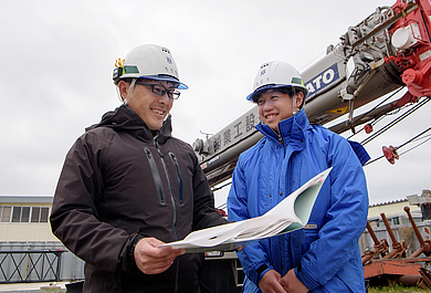 「現場代理人」という仕事は、社長の代理として発注者と交渉する仕事。発注者と書類を交わしたり、資料のやり取り、現場の工程を作成するなど全般的な管理を行います。他社では現場で物を買うのに都度申請が必要だったりしますが、当社は代理人に予算が任せられている。プレッシャーでもありますが、やりがいはあります。当然、自分の考えだけでは進まないので現場の意見を吸い上げることを心掛けています。工事が完了するまでは大変なこともありますが、完成したものを見るとなんとも言えない達成感があります。それはこの仕事に携わった人しか味わえないものだと思っています。